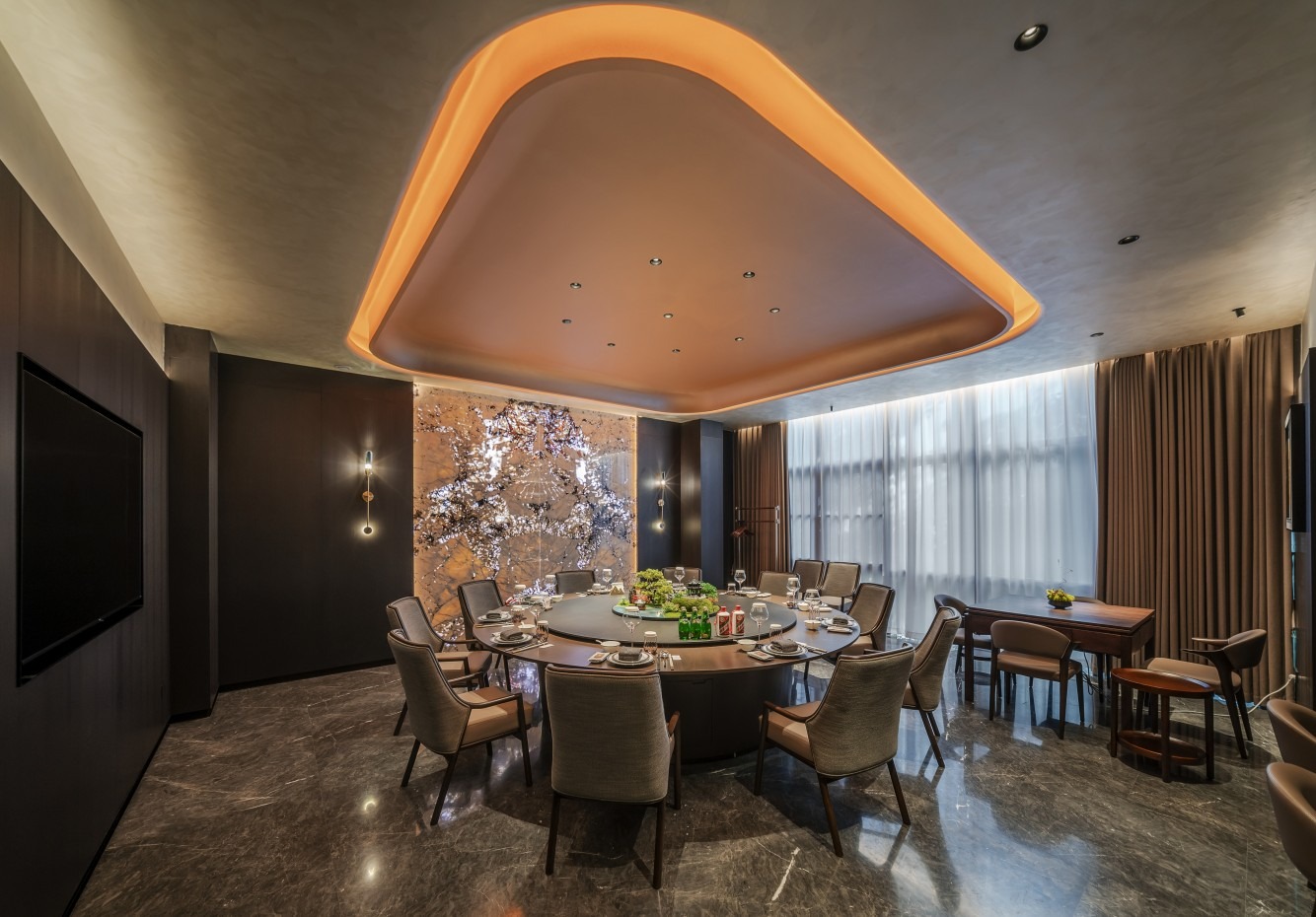 至膳壹品该餐厅以融合岭南文化的顶级奢华设计,重塑了珠江新城高端餐饮的空间美学标杆,显著提升了区域商业品质与文化格调的双重维度。