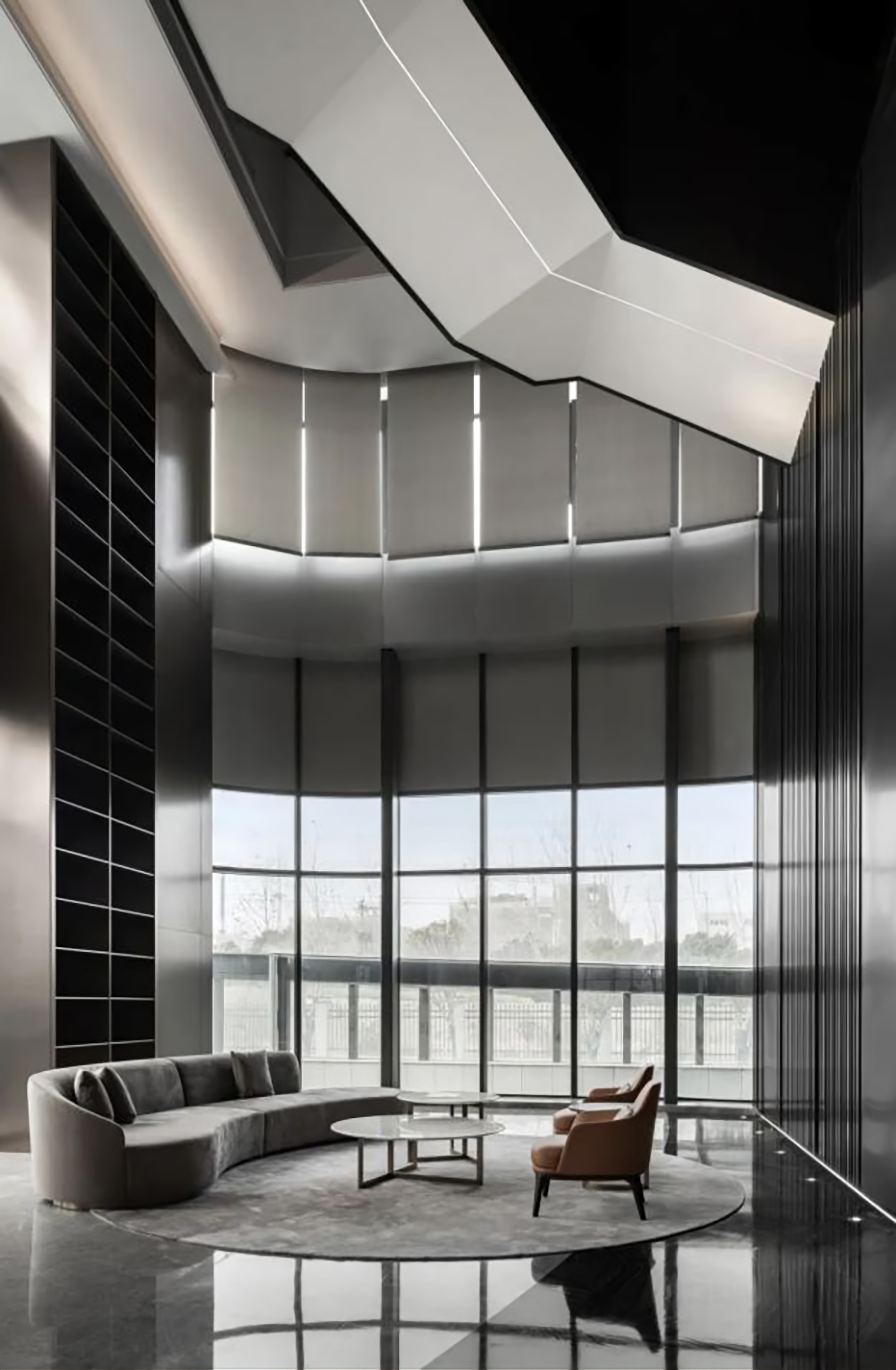 迎丰股份设计施工紧扣 “科技、绿色、智能” 三大主题,具有鲜明行业属性,通过 “绿色技术打底 + 智能系统赋能 + 行业场景嵌入” ,跳脱传统办公楼范式。